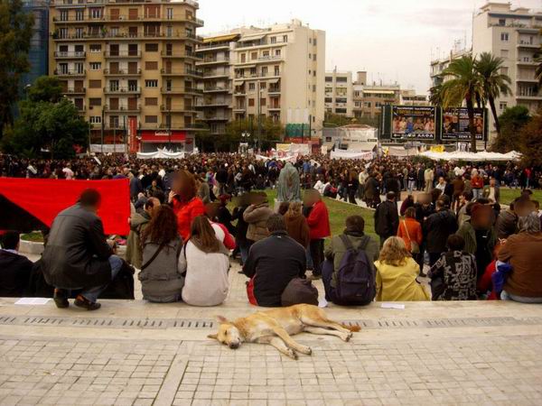 (08.12.2010, Греция) Очень трогательно, что несогласный пёс Сосиска, про которого я писал весной, продолжает принимать участие и в нынешних уличных акциях в Афинах. Настоящий карбонарий!