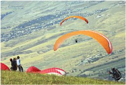 - Задача парапланеристов - пройти над трассой, которая проложена на земле, и долететь до финиша, - рассказывает один из организаторов Евгений ОРЕШКИН. - В Алматы соревнования по парапланерному спорту проводятся с 1996 года. Если раньше на состязания приезжали в основном россияне, то сейчас казахстанских спортсменов больше. Это хороший показатель роста профессионализма местных пилотов.
