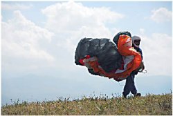 Казахстанские новостиВместе с орлами (25.08.2009, 08:52), просмотров: 2654В конце минувшей недели на плато Ушконыр (1970 м), в предгорьях Заилийского Алатау, близ Алматы, в третий раз стартовал открытый чемпионат Казахстана по парапланеризму. Экстремальная экзотика полета под облаками собрала 80 участников из России, Словении, Индии и всех регионов нашей республики. …Здесь вверяешь свою жизнь собственным знаниям и убегаешь от безопасности, бросаясь с горы в воздушную пропасть, полагаясь на закон полета. Первые парапланеристы появились в Алматы в 90-е годы прошлого столетия. Сегодня парапланеризм активно развивается и уже занял достойное место в авиационном спорте. Мы прибыли на плато Ушконыр на второй день соревнований, которые пройдут в течение недели, и сразу же попали на предстартовый брифинг.