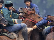 Кокпар – национальная игра, когда группа всадников борется за тушу козла или барана.