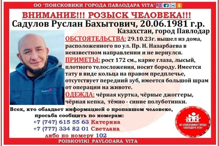 ![]() Второй пропавший – 42-летний Руслан Бахытович Садулов. 29 октября этого года мужчина вышел из дома, расположенного на проспекте Назарбаева в неизвестном направлении и не вернулся.