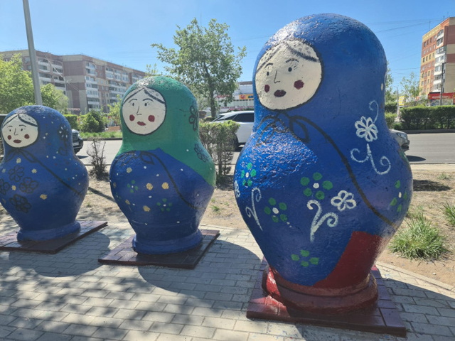 корреспондент Tengrinews.kz. Отреставрированные матрешки на этноаллее в