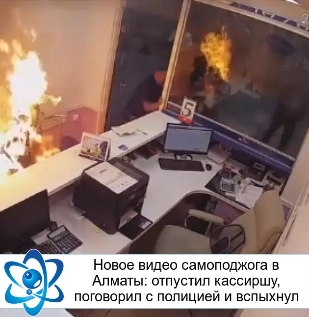 Казахстанские новостиНовое видео самоподжога в Алматы: отпустил кассиршу, поговорил с полицией и вспыхнул (26.08.2025, 16:32), просмотров: 1132В соцсетях появилось новое видео самоподжога в аэропорту Алматы. На кадрах видно, как мужчина разговаривает по телефону, спорит с полицейскими, выпускает кассиршу из помещения и спустя несколько минут поджигает себя, передаёт корреспондент Tengrinews.kz. Видео опубликовала директор авиатурагентства Nur Ai & Co, где и произошло ЧП. На кадрах видно, как мужчина в кассе аэропорта разговаривает по телефону и одновременно спорит с полицейскими. Затем он обливает себя горючей жидкостью, выпускает из помещения женщину и продолжает перепалку с правоохранителями, стоящими у двери. Согласно таймеру на видео, поджог произошёл примерно через шесть минут после начала конфликта. «Он зашел, попросил телефон, стал звонить кому-то по нему, говорил, то ли не успел на рейс, потом облил себя бензином. Наш агент попросила выйти, он её выпустил, а потом поджёг себя. Наша сотрудница, храбрая Ксения, хорошо, что не словила панику, сработала чётко и быстро», — написала в Facebook директор авиатурагентства Nur Ai & Co Гульмира Садвакасова. Она также отметила, что мужчина пришёл в кассу с воспламеняющейся жидкостью. Источник: Tengrinews Последние новости: