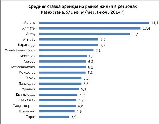 Казахстанские новостиСоставлен рейтинг городов Казахстана по стоимости аренды квартир (23.08.2014, 20:27), просмотров: 3709