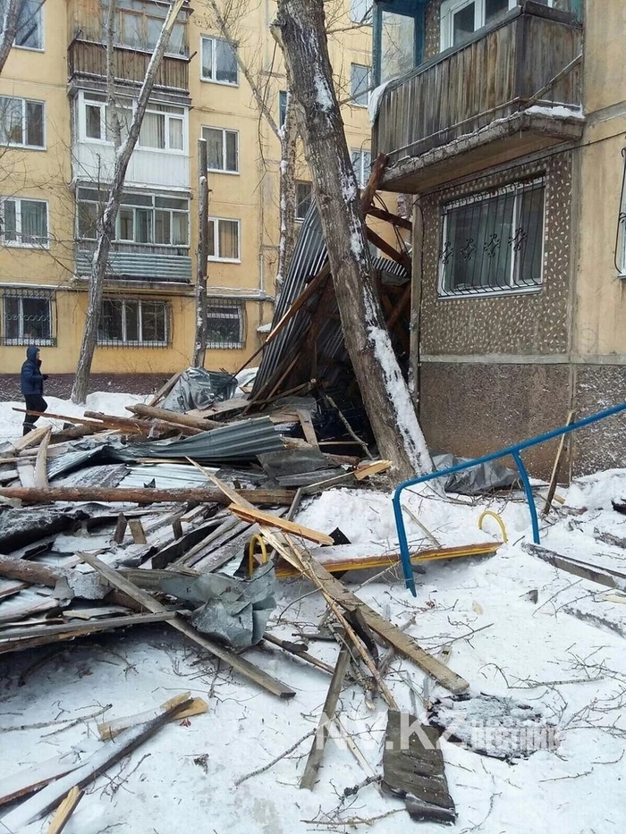 карагандинских многоэтажек пострадала от сильного ветра. Кровлю попросту