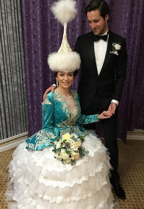 "Горд как не знаю кто! Русская красавица Яна Искакова, проживающая в Лондоне, вышла замуж сегодня за Доминика Тонге из Швейцарии в саукеле и по всем казахским обычаям и традициям, включая Акжол. Почему??? - Спросите вы. А все дело в правильном воспитании и ценностях.
