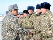 По поручению Верховного Главнокомандующего ВС РК Нурсултана Назарбаева 27 марта в час ночи были подняты по тревоге и приведены в высшие степени боевой готовности войсковые части Жамбылской области, сообщила в понедельник пресс-служба министерства обороны страны. "В процессе данного мероприятия глава оборонного ведомства Имангали Тасмагамбетов проверил состояния боеготовности и боеспособности части 03811 (поселок Кулан), 91678 (поселок Бауыржан Момышулы), 85395 (г. Тараз) и учебный полигон "Терис-Ашибулак", — говорится в сообщении.