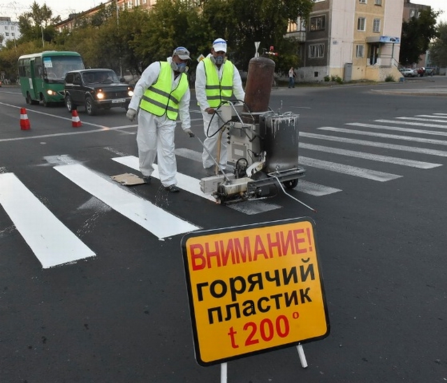 пешеходные переходы, на очереди – Лермонтова и Сатпаева. – Технологию горячего пластика постепенно внедряют во всех городах Казахстана. Она позволяет наносить более износостойкий рисунок толщиной до четырех миллиметров. Разметка, нанесенная с помощью пластика, должна продержаться как минимум год. За это время краску пришлось бы обновить раза четыре, – отмечает заведующий сектором коммунальной собственности отдела ЖКХ и автомобильных дорог города Ербол Зейнолла. На «пластиковую» разметку в этом году горакимат выделил 53 миллиона тенге. Тендер выиграла компания ТОО «Автодорсигнал». – Нами был приобретен двухкомпонентный котел разогрева и самоходная установка для нанесения пластика. Оборудование обошлось в шесть миллионов тенге, – говорит директор предприятия-подрядчика Владимир Ковалев. ![]() ![]() Температура расплавленного пластика превышает 200 градусов по Цельсию. На время проведения работ дорожные полицейские перекрывают движение автотранспорта и следят за безопасностью прохожих. В течение 15-20 минут пластик полностью застывает. Всего с применением новой технологии в городе будут обновлены около тысячи «зебр». Алишер Шаяхметов, Фото Владимира Бугаева pavlodarnews.kz Последние новости: