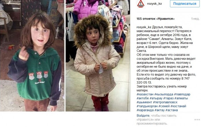 Tengrinews.kz со ссылкой на пресс-службу городского ДВД. Сотрудники полиции заметили в Интернете пост, в котором граждан призывали найти девочку по имени Катя. "Как оказалось, сообщение в социальной сети опубликовала молодая алматинка по имени Наталья, являющаяся волонтером и занимающаяся благотворительностью. Под Новый год женщина с подарками направилась в семью Светланы, что проживает в дачном массиве Медеуского района. Ранее Наталья уже не раз помогала ей, а точнее маленькой дочери Светланы - шестилетней Кате. Потому что из-за своего пагубного пристрастия к алкоголю мать не оказывает должного внимания своему ребенку. Также, по словам волонтера, Светлана - многодетная мать, остальные ее дети якобы воспитываются в детском доме. Наталья поделилась, что, не найдя Свету с дочерью дома, она не на шутку встревожилась, женщина испугалась за девочку, которая с пьющей матерью могла попасть в беду. К тому же соседи ей рассказали, что мать и дочь они не видели с октября месяца. Вот так и появился пост в Сети", - рассказала официальный представитель ДВД города Алматы Салтанат Азирбек. В тот же день к поиску Кати были подключены сотрудники ювенальной полиции города, которые в первую очередь проверили детские и медицинские учреждения. Шестилетняя Катя была найдена в центре адаптации несовершеннолетних. Ребенок был цел и невредим, все это время он находился в безопасности. Выяснилось, что в октябре девочка оказалась без присмотра и заблудилась. Ее заметили сердобольные люди, которые сообщили о найденыше в полицию. При этом о себе девочка практически ничего не рассказала, только назвала свое имя, о родных тоже никакой информации не сообщила. ![]() За все это время за девочкой никто не пришел. "Но появившиеся сведения после поста в Интернете дали надежду отыскать маму Кати. В садоводческом обществе, кстати, о Светлане ничего не знают, говорят, что она здесь жила непродолжительное время, всегда пила и приводила в жилище гостей. Если женщину удастся найти, тогда будут установлены точные анкетные данные Кати. А далее будет изучен образ жизни женщины, собраны необходимые материалы и поставлен вопрос о лишении ее родительских прав", - сообщила Салтанат Азирбек. Tengrinews Последние новости: