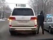 Алматы мужчина справил нужду прямо на дороге, выйдя из внедорожника.