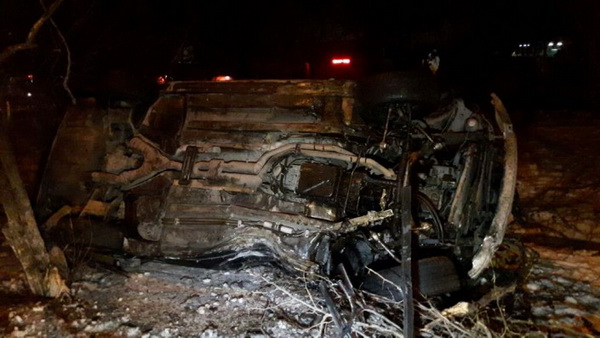 После чего машина опрокинулась набок. Судя по фото с места происшествия, автомобиль восстановлению не подлежит.