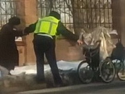 Страж порядка перенес коляску, помог пожилому человеку перебраться на обочину дороги и дальше повез старца.