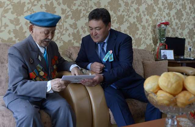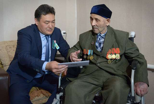 Павлодарской области Булат Бакауов зашел в гости к восьми фронтовикам и