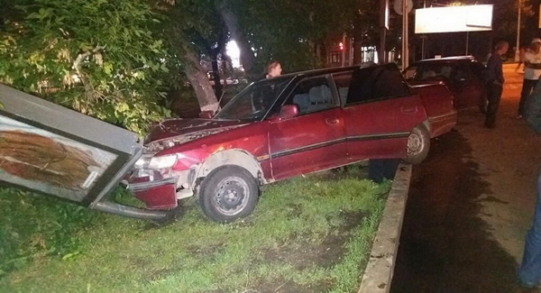 Оба автомобиля откинуло в бордюр, после этого Subaru еще снес рекламный щит.