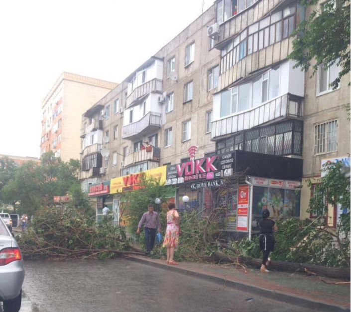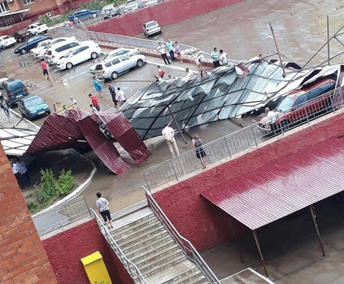 корреспондент Tengrinews.kz. "Информация поступила в 12.53. Из-за сильного порыва ветра произошел частичный срыв кровли Центрального стадиона имени Кобланды батыра на площади 34 квадратных метра. При падении (часть кровли - прим.автора) повредила стекла летней террасы ресторана "Рахат", - сообщили в пресс-службе ДЧС Актюбинской области, отметив, что пострадавших при происшествии нет. Видео влетевшей в ресторан металлической кровли опубликовано в Instagram-аккаунте @aqtobelife. Кроме того, пользователи Сети публикуют фотографии вырванных с корнем и рухнувших на автомобили деревьев, обвалившиеся крыши и места обрыва электросети. "Батыс 2. Сильный ветер вырвал с корнем стоянки и полетел в сторону дома, разбил машины и балконы жильцов", - пишет в Instagram @gorod_aktobe.