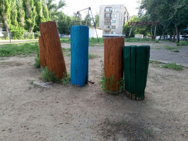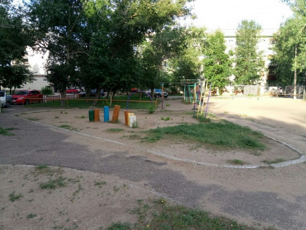 ![]() "В этом году у нас только пеньки во дворе покрасили. Говорят, краску какой-то депутат давал. В прошлом году их тоже красили. Прутья от качелей срезали, оставили только опоры и ржавую горку", - говорит молодая женщина. С просьбой о помощи к акиму города обратились и маленькие жители домов по улице Торайгырова.