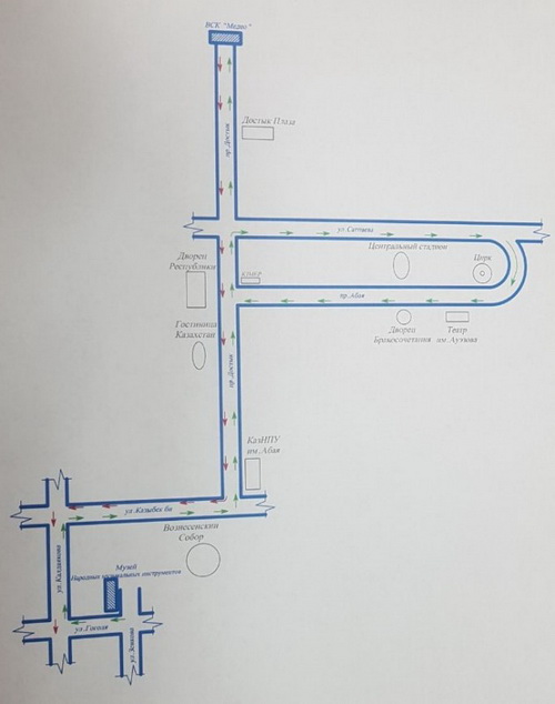 По предварительным данным, электроавтобус планируют пустить по следующему маршруту: Медеу, "Достык Плаза", Центральный стадион, театр имени Ауэзова, цирк, Дворец Республики, парк 28 гвардейцев-панфиловцев.