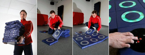 И те же самые светящиеся квадратики, считает компания Entertainment Robotics, могут стать подспорьем в фитнесе или в тренировках спортсменов. Скажем, из плиток можно составить чувствительную стенку для отработки точности удара мячом.