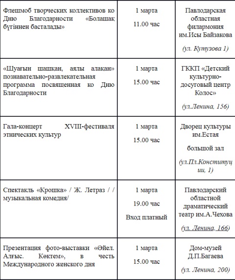 Городские новостиКак павлодарцы начнут отмечать мартовские праздники (28.02.2018, 13:08), просмотров: 3849