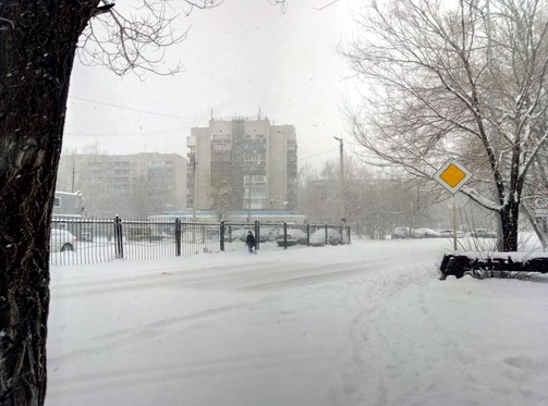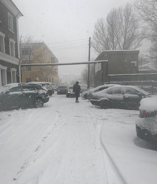 Караганде с раннего утра идет сильный снег. Жители города бурно
