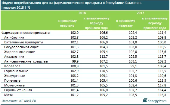 за год, передает NUR.KZ cссылкой на Energyprom. В тройке лидеров, где произошел самый резкий скачок цен, оказались Алматинская, Мангистауская и Атырауская области. Там лекарства подорожали более чем на 10%. Лекарства подорожали в Казахстане Больше всего цены выросли на гормональные препараты. Они подскочили почти на 20,5%, следующими по скорости роста цен идут анальгетики - 12,7%, далее желудочные препараты, которые за год стали дороже на 9,1%. Сильнее всего рост цен ощутили на себе жители Алматинской области, теперь им приходится платить на 14% больше, чем в прошлом году. В Мангистауской и Атырауской области цены выросли на 11,9% и 10,9% соответственно. А в Восточно-Казахстанской области цены остались практически без изменений. В январе-феврале 2018 фармацевтические компании Казахстана произвели 4,12 тонн лекарств, стоимость производства только основных фармпродуктов составила 13,19 млрд тенге. Лекарства подорожали в Казахстане ![]() ![]() Фото: Energyprom Источник: NUR.KZ Последние новости:
