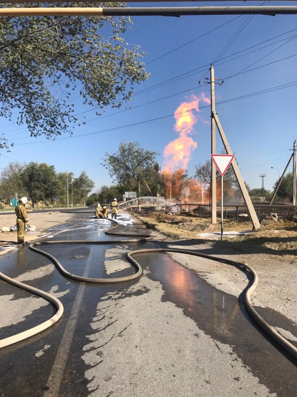 пламя тушили в Шымкенте из-за разрыва газопровода, передает