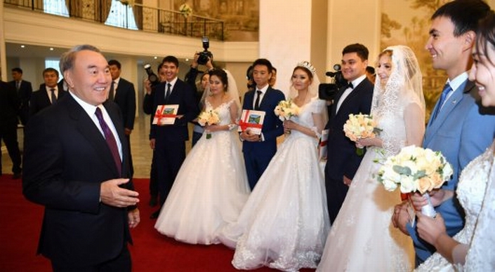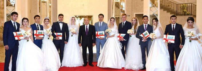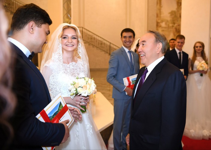 Молодожены поблагодарили Нурсултана Назарбаева за проводимую политику, направленную на поддержку молодых семей, в том числе, за программу "7-20-25".