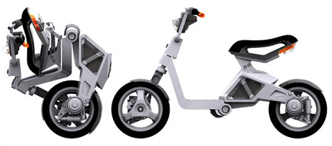 Группа Smart Cities Массачусетского технологического института (MIT), возглавляемая профессором Уильямом Митчеллом (William J. Mitchell), совместно с одним из крупнейших производителей скутеров на Тайване — компанией SYM, и тайваньским исследовательским институтом технологий (ITRI) представили на Миланском автошоу (Milan Motor Show) прототип складного электрического скутера. Называется эта симпатичная вещица Cuter Scooter (cuter -проницательный, сообразительный, изящный, привлекательный) или RoboScooter. Американские изобретатели отмечают, что скутеры особенно популярны в Европе и Азии, в тесных городах, поскольку, мол, предоставляют своим владельцам куда большую свободу передвижения, чем автомобиль. И пробки им не страшны, и припарковать такого "коня" можно в любом "углу". Но классические скутеры с ДВС Митчелл считает слишком шумными и "грязными". Так что для замученных выбросами городов электрические двухколёсники – самое то. Собственно, такие аппараты уже выпускаются, однако складной вариант мы видим впервые.