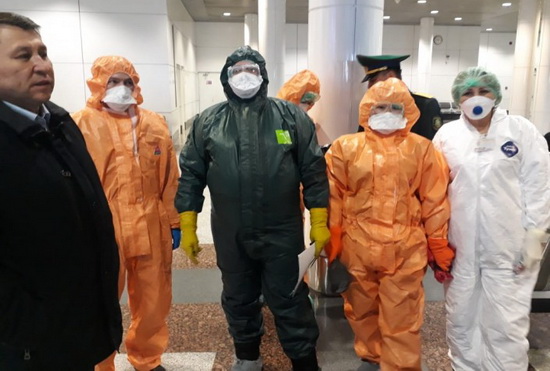 К борту выехала машина скорой помощи с инфекционистом-консультантом, двумя эпидемиологами и группой для дезинфекционной обработки самолета. На место приехал главный санитарный врач страны Жандарбек Бекшин. Он объяснил ситуацию лицам, встречающим пассажиров.