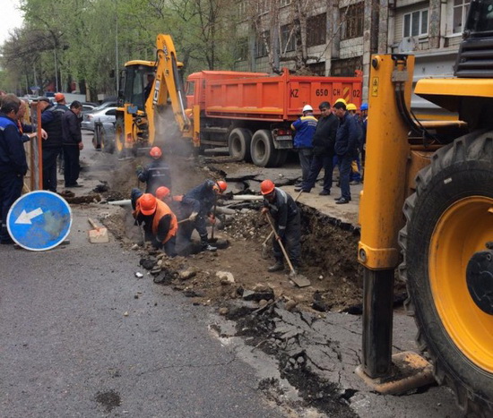 Утром 10 апреля около 04.00 на участке, проходящем по улице Пушкина южнее улицы Толе би, произошел порыв изношенного трубопровода. Он эксплуатировался с 1993 года. В результате инцидента четверо жителей госпитализированы.