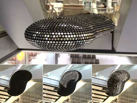 Правда, чтобы создать Cloud, лондонским инженерам пришлось немало поломать голову. Например, в поисках формы "Облака", которая, с одной стороны, была бы более-менее похожей на природную, а с другой — обеспечивала бы регулярную, математически выверенную раскладку круглых зеркал. Не меньшей головоломкой оказалось написание программы управления "цифровым облаком". Кроме того, чтобы получить возможность выводить очень динамичные картинки, изобретатели установки так увеличили скорость переворота всех зеркал, что они могут быть перекинуты из одного положения в другое менее чем за полсекунды. На весь проект от замысла до запуска "Облака" в работу ушло 8 месяцев. Но финальную точку Troika доверила коллегам: части Cloud изготовила и собрала в единое целое лондонская же компания Mike Smith Studio. В этом ролике можно увидеть Cloud во всей красе. Сами авторы аппарата говорят, что его работа напоминает не только о переменчивых облаках, но и о переливах плещущейся воды, играх серебристых рыбок и даже гипнотизирующих покачиваниях змеи. Всё это должно настроить пассажиров на дальние странствия.