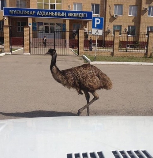 птицу. Страус даже успел покрасоваться перед местным акиматом. Как сообщила хозяйка птицы Марина Кузяк, 5-летняя самка австралийского страуса, была напугана накануне ночью неизвестными и, перепрыгнув через вольер, убежала на волю. Птица практически весь день бродила по улицам Кандыагаша и, в конце концов, была убита. Полиция, в связи с отсутствием претензий со стороны владелицы, не заводила дело.