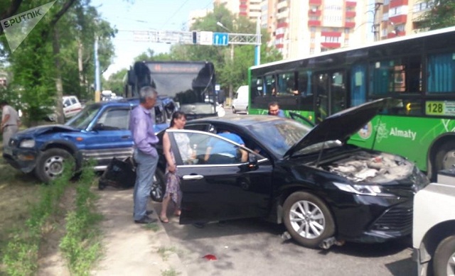 В Алматы городской автобус маршрута № 44 на большой скорости протаранил сразу четыре автомашины, припаркованные вдоль обочины. Среди причин ДТП рассматривается отказ тормозов у общественного транспорта. Авария произошла около 15.30 по улице Жандосова между улицами Алтынсарина и Берегового. По словам многочисленных очевидцев, маршрутный автобус следовал по Жандосова на запад, когда его водитель, пока по неизвестной причине, потерял управление и на всей скорости врезался в автомашину Toyota RAV 4, припаркованную на обочине. От удара иномарка влетела на бордюр и врезалась в заднюю часть также припаркованной Toyota Camry, которая повредила впереди стоявший автомобиль Subaru Forester. Последний, в свою очередь, врезался в ехавший на запад Hunday. ![]() Несмотря на то, что столкновение оказалось довольно сильным, в результате аварии как пассажиры автобуса, так и одной из иномарок отделались лишь испугом и легкими ушибами. Все они были осмотрены на месте медиками и от госпитализации отказались. Серьезно пострадавших и погибших в аварии нет. Теперь в причинах происшествия будут разбираться сотрудники отдела по расследованию ДТП. По одной из версий у автобуса могли отказать тормоза. Источник: Sputnik Казахстан Последние новости: