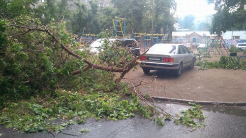 Сорванная металлическая конструкция упала на припаркованное во дворе авто. Кроме того, ветром поломало деревья во дворах домов. По информации ДЧС региона, информация о пострадавших пока не поступала. Между тем павлодарцы продолжают выкладывать фото и видео с места стихии.