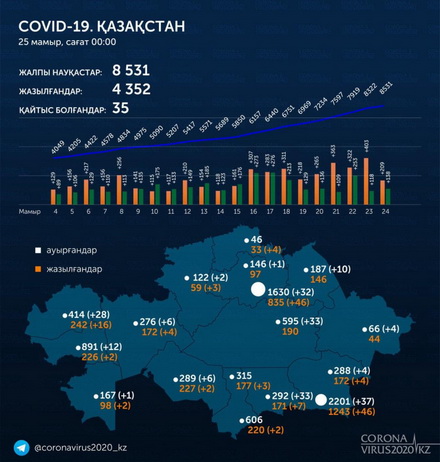 Казахстанские новости209 человек заразились коронавирусом в Казахстане за сутки (25.05.2020, 09:47), просмотров: 1357