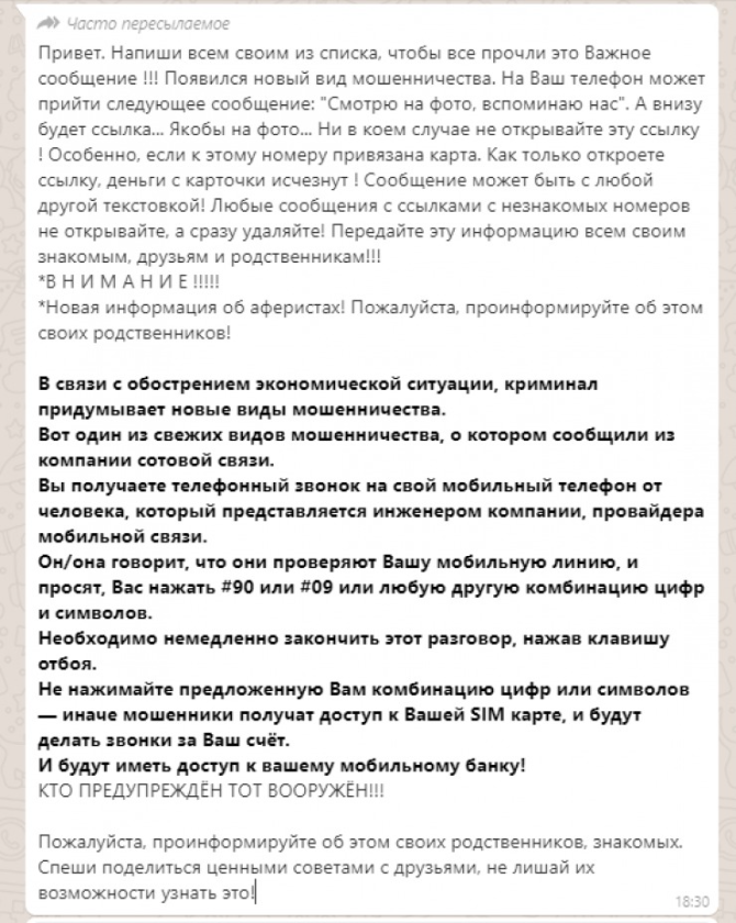Казахстанские новостиМошенники обманывают казахстанцев через WhatsApp (03.02.2021, 17:33), просмотров: 3751О новом для Казахстана способе мошенничества с помощью WhatsApp предупреждают пользователи Сети. Злоумышленники высылают жертвам в мессенджере ссылку якобы на их собственные фото, после перехода по которой мошенники получают полный доступ к персональным и платежным данным, передает Tengrinews.kz со ссылкой на Stopfake.kz. Как сообщили в Службе реагирования на компьютерные инциденты KZ-CERT, такой способ мошенничества возможен, так как отправленная злоумышленниками ссылка может содержать вредоносное программное обеспечение или вести на фишинговый сайт. ![]() «Если вам пришла информация со ссылкой, то отправляйте ее в чат https://t.me/kzcert для проверки. Наши сотрудники проверят и дадут обратную связь. Мы работаем 24/7», — сообщили в Службе реагирования на компьютерные инциденты KZ-CERT. Также в рассылке предупреждают о звонках от якобы менеджеров компаний сотовой связи. Они просят ввести на телефоне комбинацию цифр и знаков, которая позволяет злоумышленникам завладеть паролями для доступа к мобильному банкингу. В PR-службе компании Beeline объяснили, что технически такая схема работать не может. «Украсть пароли от банкинга по телефонному разговору и вводом некоторых цифр технически невозможно. Мошенники могут с помощью манипуляции заставить продиктовать код кредитной карты для завладения денежными средствами. Набором цифр и символов завладеть сим-картой и мобильным банкингом нельзя. Клиентам стоит быть осторожными и не поддаваться на провокации мошенников. Сотрудники сотовых операторов никогда не звонят абонентам и не просят нажать комбинацию цифр и символов», — сообщили в компании. Тем не менее специалисты советуют не вводить никаких данных в ответ на сообщения или по просьбе незнакомых вам звонящих. Как пишет издание, о подобной схеме мошенничества уже сообщали ранее в других странах. Впервые о ней написали в Сети жители Москвы в 2017 году. Источник: Tengrinews Последние новости: