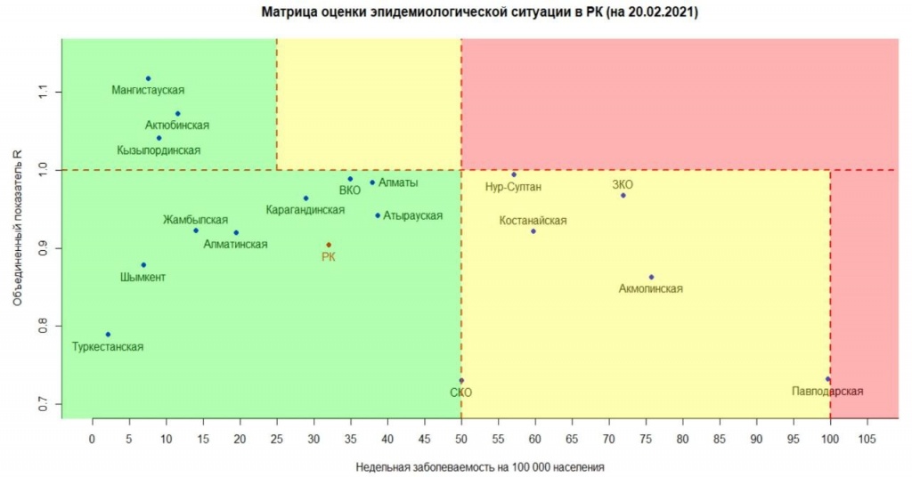 ![]() Помимо Павлодарской, к «жёлтой» зоне по COVID-19 относятся Нур-Султан, Акмолинская, Западно-Казахстанская, Костанайская, Северо-Казахстанская области. В «зелёной» - все остальные регионы.