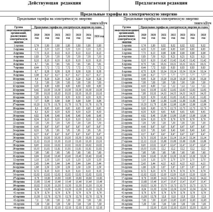 Казахстанские новостиЭлектроэнергия подорожает в Казахстане (09.03.2021, 13:55), просмотров: 3828В Казахстане планируют повысить тарифы на электрическую энергию. Соответствующий проект приказа подготовило Министерство энергетики РК. На портале «Открытые НПА» опубликован проект приказа министра энергетики РК «О внесении изменения в приказ Министра энергетики Республики Казахстан от 14 декабря 2018 года № 514 «Об утверждении предельных тарифов на электрическую энергию», передает Azattyq Rýhy. Согласно нему, предельные тарифы на электрическую энергию предлагается повысить, начиная с 1 апреля 2021 года. Как видно из таблицы, ранее были утверждены предельные тарифы на электроэнергию на период с 2019 года по 2025 год, причем ежегодные тарифы на 2020-2025 годы были утверждены в одинаковом размере. Как поясняется в сравнительной таблице к проекту приказа, введение в действие измененных предельных тарифов на электрическую энергию осуществляется с первого числа месяца, следующего за месяцем их утверждения. При этом основными факторами, влияющими на рост затрат энергопроизводящих организаций (ЭПО), были названы: — ежегодно растущая надбавка за возобновляемые источники энергии (ВИЭ); — увеличение затрат на импортируемые материалы и запчасти, подверженные курсовым колебаниям (котлотурбинное, насосное, золоулавливающее оборудование и другое); — рост стоимости угля ТОО «Богатырь Комир». — рост цены на транспортировку газа. «Утвержденные предельные тарифы ЭПО не покрывают затраты большинства ЭПО на топливо; ВИЭ; и связанные с увеличением стоимости импортных материалов, запчастей и оборудования 2020 года, а также увеличение затрат на покупку регулируемых услуг (диспетчеризация, балансирование и другое)», — говорится в сравнительной таблице к проекту приказа министра энергетики РК. Проект документа, разработчиком которого является Министерство энергетики РК, вынесен на публичное обсуждение до 25 марта 2021 года. Последние новости: