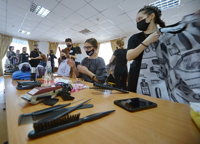 На «парикмахерское дело» в колледже сферы обслуживания принимают на базе девяти классов. Студенты учатся год и десять месяцев. На первом курсе им часто устраивают практику в самом колледже и в разных организациях: других колледжах, школах, военной части, доме мамы или доме престарелых. Услугу начинающие парикмахеры оказывают бесплатно, сообщил директор колледжа сферы обслуживания Азамат Кашитов. На производственную практику парикмахеры-модельеры выходят на втором курсе, с клиентами они работают уже в салонах.