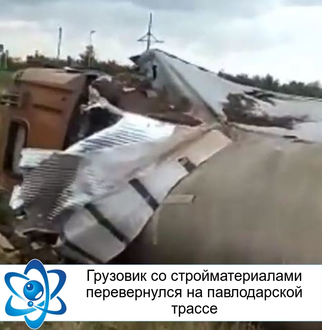 Грузовик со стройматериалами перевернулся на павлодарской трассе (13.08.2021, 12:13), просмотров: 2144