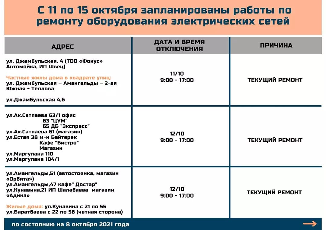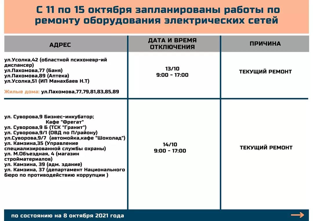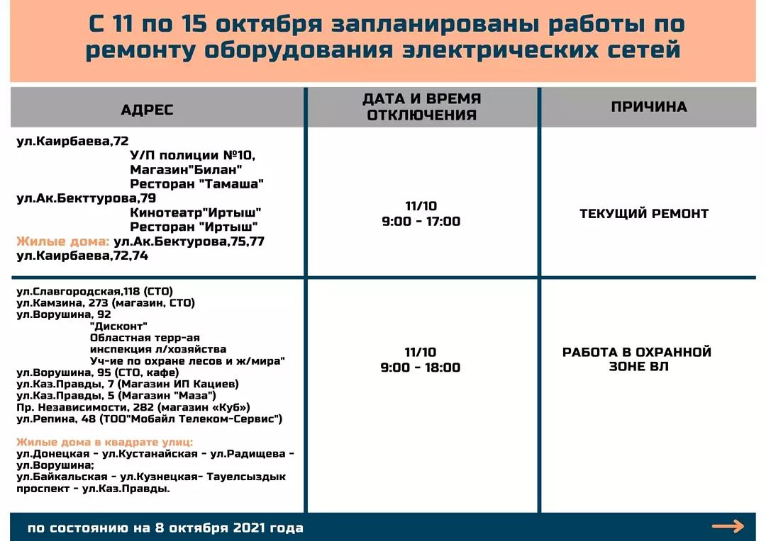 Где в Павлодаре с 11 по 15 октября отключат электричество (09.10.2021, 13:53), просмотров: 3497