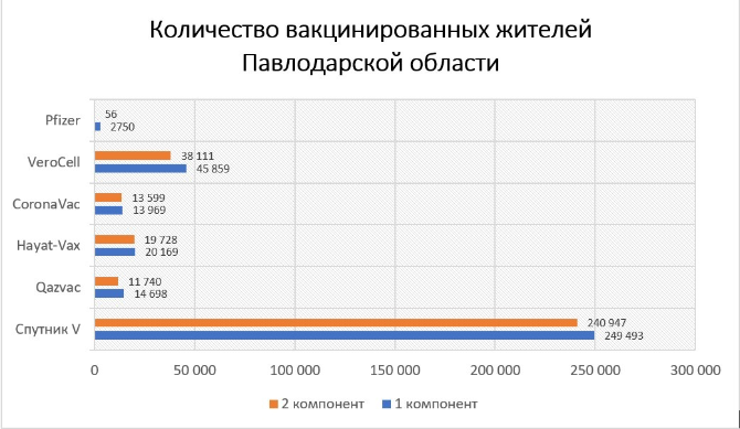 В регионе доступны три препарата – Pfizer, Qazvac и «Спутник V». В областном управлении здравоохранения обновили статистику по вакцинации от коронавируса. По последним данным, всего в регионе от COVID-19 полностью привились 323 911 человек. Только один компонент вакцины получили 326 938 жителей, передаёт корреспондент Pavlodarnews.kz.