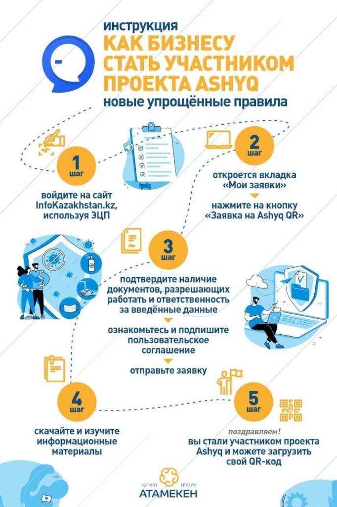 Городские новостиПавлодарским предпринимателям облегчили получение QR-кода для участия в «Ashyq» (22.12.2021, 10:55), просмотров: 1892Участие в проекте позволяет работать не смотря на коронавирусные ограничения. Палата предпринимателей «Атамекен» изготовила карточки с инструкцией, как сделать это по новым правилам, передает корреспондент Pavlodarnews.kz. «Приложение „Ashyq“ даёт возможность бизнесу продолжать свою деятельность в период карантинных мер», — подчёркивает директор региональной палаты предпринимателей Серик Садвакасов. Напомним, для входа в общественные места посетитель сканирует специальный QR-код с помощью приложения «Ashyq» и предъявляет на входе рейтинг риска заражения, указанный в приложении. Всю информацию по вхождению в проект предприниматели могут получить, обратившись в палату предпринимателей Павлодарской области и её филиалы в городах и районах. Адрес РПП «Атамекен» в Павлодаре: улица Луговая, 16 (Дом инвесторов). Последние новости: