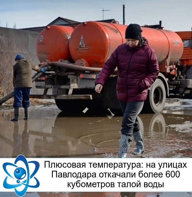 Городские новостиПлюсовая температура: на улицах Павлодара откачали более 600 кубометров талой воды (06.03.2022, 21:53), просмотров: 2056В городе также продолжают вывозить снег, передаёт корреспондент Pavlodarnews.kz.Большие лужи на улицах Павлодара образовались после резкого потепления. Днём столбики термометров поднялись до +5 градусов. Повлиял и дождь, который начался накануне вечером. Из-за осадков в регионе даже закрыли две трассы – за ночь вода замёрзла, и дороги превратились в каток.