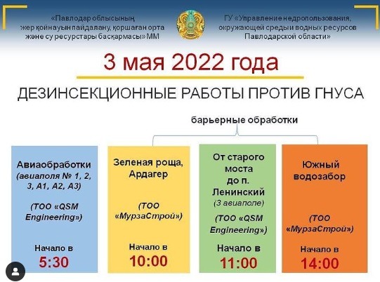 Городские новостиПлан авиаобработки от гнуса на 3 мая назвали в Павлодаре (03.05.2022, 10:25), просмотров: 1392Все работы проводят по рекомендации научной группы. По информации регионального управления недропользования, 3 мая областной подрядчик ТОО «QSM Engineering» с двух самолетов АН-2 проведет дезинсекционную обработку в районе Ленинского и Кенжеколя. Также захватят территорию от старого автомобильного моста до Ленинского, передает корреспондент Pavlodarnews.kz. В этот же день городская подрядная организация ТОО «МурзаСтрой» проведет барьерную обработку против кровососущих насекомых в районе «Ардагерлер уйi» областного центра, Зелёной рощи, у водоемов Южного водозабора. Как сообщили в управлении недропользования, за дезинсекцией следят представители акимата и группы научного сопровождения. Последние новости: